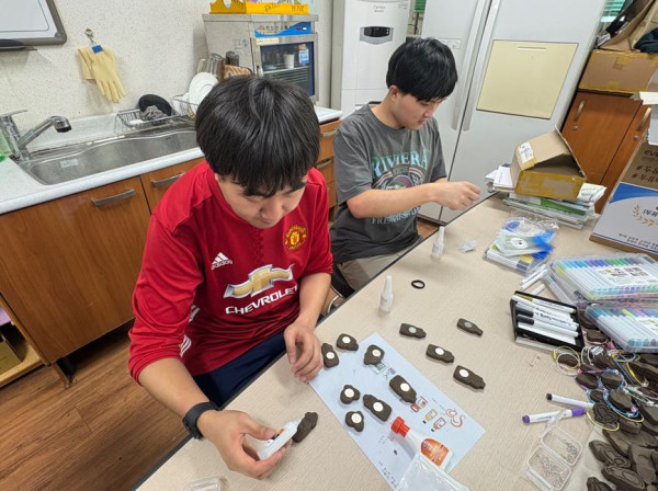 오늘도 자체생산품 모형의 커피박 자석 제작과 모형 꾸미기를 해보았습니다. 버려지는 커피박을 활용한 친환경 공예품!! 대상자분들의 작품 하나하나에 환경을 생각하는 마음을 담아 제작하였습니다.
